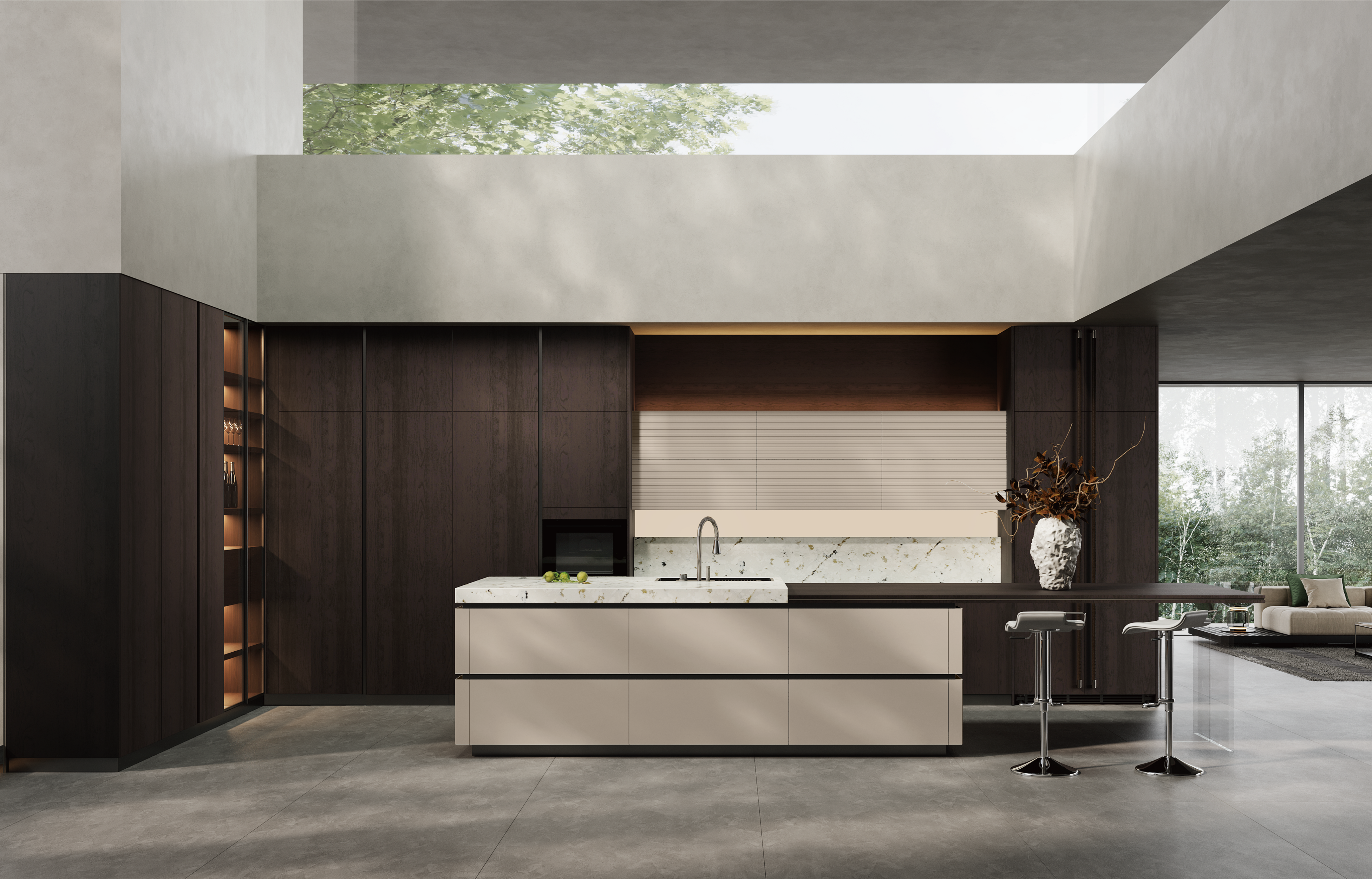 通过好博厨柜量体裁柜,定制出适合主厨下厨的烹饪区和洗涤区的舒适高度。